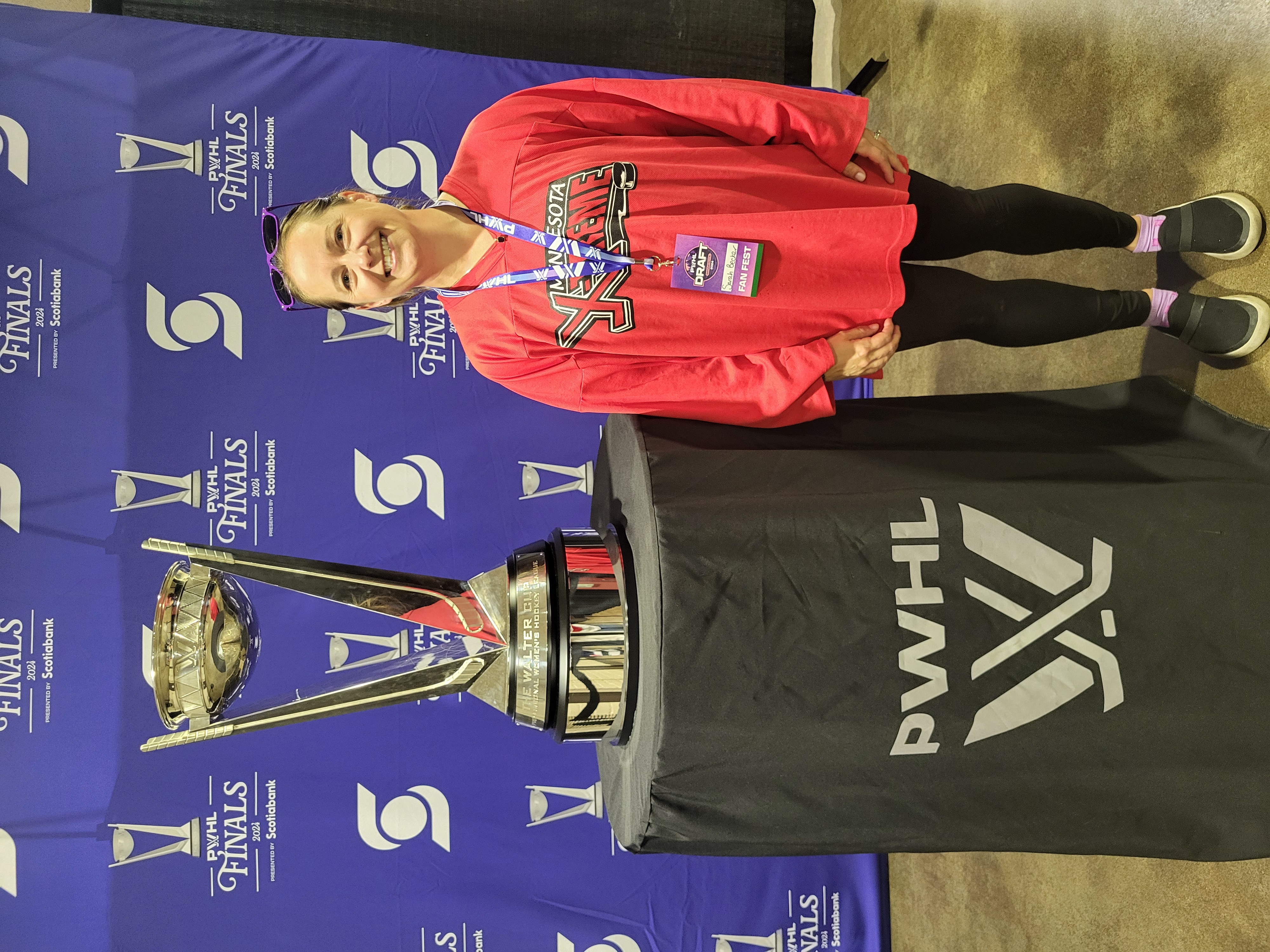 Sarah’s hockey journey began on a frozen lake in Minnesota, where she first skated in figure skates before switching to hockey skates at age 12. She quickly fell in love with the sport, joining one of the few all‑girls teams in her association. Sarah went on to play high school hockey and later college hockey at the College of Saint Benedict in MN, balancing athletics with academics and even studying abroad during her college years. After graduation, she continued playing in the Women’s Hockey Association of Minnesota (WHAM), though she often wrestled with self‑doubt despite her strong skating skills.